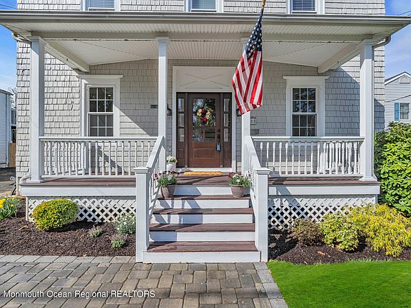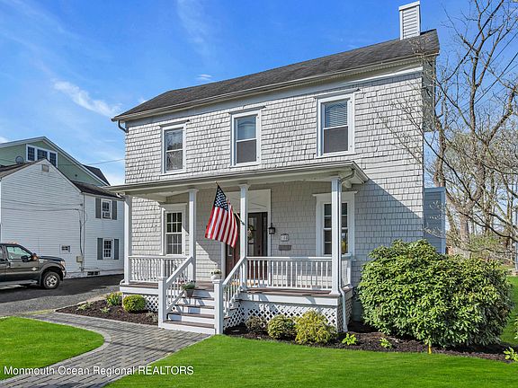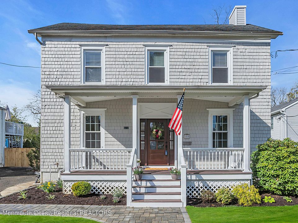 COME FALL IN LOVE with this renovated, classic beauty in the heart of vibrant Red Bank! Close to everything! With the curb appeal of historical colonial architecture, this 3-bedroom, 2.5-bath beauty is a special opportunity on an oversized lot. The front door is an easy pedestrian distance to town center, boutique shops and endless dining options in Downtown Red Bank. Effortless commute with train service to NYC but also just a short drive to the beautiful Jersey Shore beaches. The interior includes wide plank oak engineered hardwood throughout, an open layout, stylish lighting, neutral decor, and remarkable 9 ft ceilings. In the kitchen, natural light, brand new EVERYTHING, premium appliances, and an attractive island layout create an inspiring environment for culinary achievement. The tranquil main-floor primary bedroom includes a walk-in closet and double sinks. The other two bedrooms, located on the second floor for privacy, are ready to reflect your favorite decor. Did I mention second floor laundry w/ New washer & Dryer, new HVAC, Newer HE water heater, Nest thermostat, new windows on the first floor, three new bathrooms, recessed lighting throughout. An unfinished basement provides extra storage space as well as a detached one-car garage. Greet passers-by from the breezy front porch. Don't let someone with equally great taste beat you to the closing table on this one!