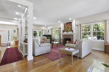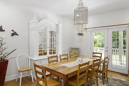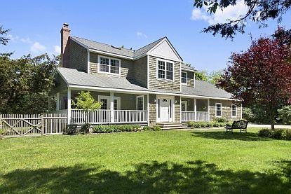This immaculate 3600 sq ft, 5 bedroom ( all with ensuite baths ), 5 1/2 bath Traditional Shingled house is set on 1 acre. way down a private road, close to East Hampton Village shops, restaurants and ocean beaches. Light and Bright this house built in 2006 has wide wood plank floors throughout, large living room with fireplace , eat in kitchen, and formal dining room with french doors that lead to a deck. .There is a very large 2nd floor master bedroom with separate shower and Jacuzzi and a first floor jr master. Sit on the front porch, or lounge by the pool with stone patio surrounding in a very private setting. John Marshall School District.