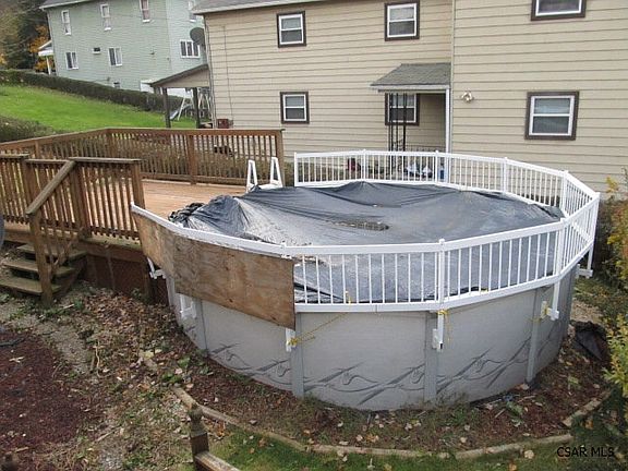 Nice Starter or Rental . Above ground, deck, updated kitchen, and covered porch. House also has newer windows and an updated bathroom.
