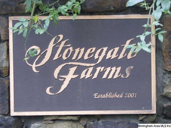This is the best site in the gated community of STONEGATE FARMS. BEAUTIFUL property!!!! Zoned for horses. This site is very level and has mature trees. It would take very little site work to build YOUR dream home. Square footage requirements are 2,500 up. Serenity, peace and privacy within minutes of Inverness, Hoover and Chelsea. Take advantage of this great opportunity TODAY!!!