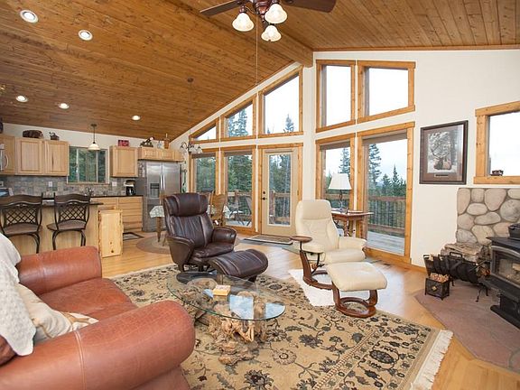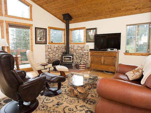 TURN KEY HOME IN Valley of the Sun! Rustic touches throughout this well maintained home w T&G ceilings and solid wood doors/trim! K/GR/LLR have gorgeous wood floors, granite counters, tile backsplash and SS appliances. Cozy up to the wood stove while taking in the big views! 2 large decks & a fantastic fire pit area for outdoor mountain fun. LL living area features a beautiful bar area & gas stove. LL bath has large walk in shower and hand made vanity. Huge DRY storage area for all your toys!