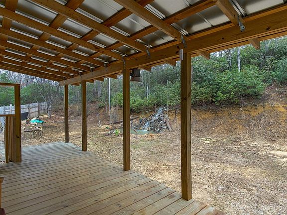 This split bedroom home is located on two fenced acres just eight minutes from downtown Old Fort. The large front porch looks over a lovingly tended front yard with a beautiful waterfall into a little pond that is begging for coy fish. Just wait until spring when the plants come out. Red buds, a Japanese Maple, elephant ears, large purple Iris plants and Rose of Sharon are just a few in the front yard. The large vegetable garden also has grapes, blue berries and a peach tree. This is a great spot to hunker down while you work on a project. Two large outbuildings, one with a toilet and shower, would make a great space for a workshop or art studio. Just beyond the main home is a great building spot with potential views over the Crooked Creek Valley. The property is also accessible from McGinnis Road on the downhill side.