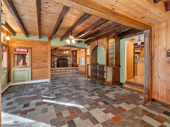 Welcome to your spacious home and family retreat in the charming town of Freedom, NH. Set on a picturesque 1.89-acre lot, this property offers privacy and serenity with a gated entrance and a circular paved driveway. The beautifully landscaped grounds feature mature trees, a tranquil fountain, a gazebo, and plenty of room for outdoor activities. Inside, you'll find a welcoming, well-appointed home with 5 bedrooms, 2 bathrooms, and a variety of living spaces to suit all your needs. The kitchen boasts stunning pecan wood cabinets and granite counters and flows seamlessly into the dining and living areas. The home is rich with wood and timeless features, including slate floors, warm yellow pine floors, and exposed beams incorporated into the ceilings, giving the home a rustic yet refined character. Enjoy a peaceful retreat in the first-floor suite with its own luxurious bathroom, complete with a separate shower and tub, as well as convenient laundry facilities nearby. Additional rooms include a cozy sunroom, family/media room, library/office, and even a bunk room – offering endless possibilities for customization. The home also features ample storage and parking, with a two-car garage under the house and attached to the basement, plus an expanded detached two car garage with finished space and potential for further development above. This property offers the perfect balance of comfort, and versatility for your family to enjoy for years to come.
