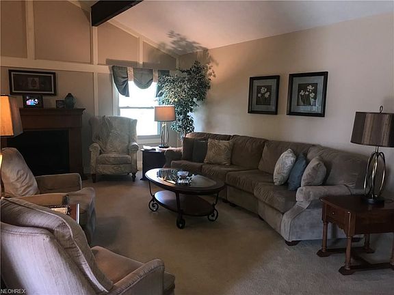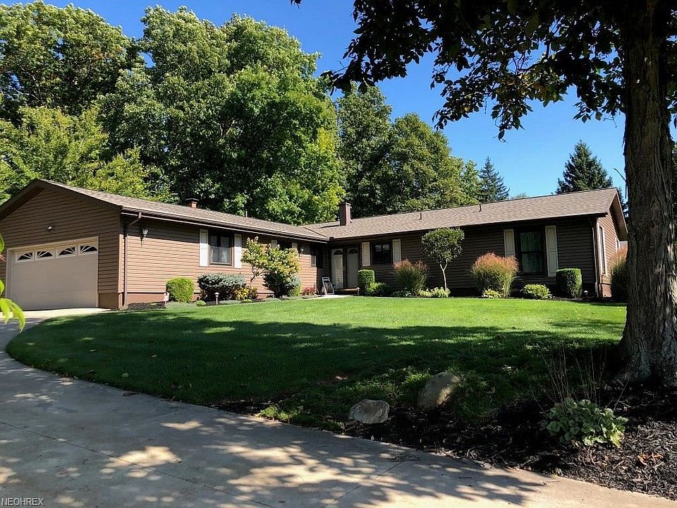 Impeccably maintained 4 bedroom, 2 bath ranch with a first floor utility room! Enjoy the large eat in kitchen with Corian countertops, with all newer kitchen appliances, including a double oven. There is even a breakfast bar and fireplace. An expansive great room with a vaulted, beamed, ceiling and cozy fireplace is just off the kitchen. The owner's suite offers 2 closets, in suite master bath with his & her cabinetry, & a double walk in shower with seat. You will love sitting on the large patio located just off the kitchen which overlooks a beautiful landscaped lot and storage shed. The home has many updates including a new roof 10/17. Located near Aurora Farms Premium outlets, Walden Inn & Spa, & Tinkers Creek Nature Preserve, and an award winning school district. Easy access to freeways, & turnpike. Nothing left to do...just place your furniture.