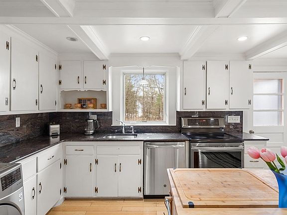 Welcome home to your expansive colonial in a prime location. Set upon a vast private lot, this property offers an unparalleled retreat from the bustle of everyday life. 3-bed, 2-bath haven embraces you w/ its inviting ambiance. The kitchen, adorned w/ granite countertops & backsplash, beckons culinary adventures amidst decorative coffered ceilings. This home offers tranquility in a sought-after neighborhood. The living room, boasting a fireplace, seamlessly flows into the dining area, perfect for gatherings. Step through sliders into the heated 4-season family room, a sanctuary for relaxation.The first-floor primary bedroom suite, accompanied by an updated full bath, ensures comfort and convenience. Beautiful Hardwood floors, leading to 2 generously-sized bedrooms upstairs, complemented by a wood stove & office area. W/ updated bathrooms, new soaking tub, newer roof, newly painted, new modern light fixtures & window/sliders, composite deck, brand new sod and professionally landscaped.