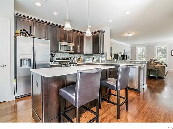 Elegant & classy end unit in the premier Rivington complex. Kitchen w custom granite & backsplash, elegant cabinetry, SS appliances, & a dining area, opens to a deck overlooking a private wooded area. Living /dining area can be used as a lg liv rm, or can also accommodate a dining set, Gleaming hardwood floors complete main level. This is a unique Claremonte unit, which has been converted from a 3 bdrm unit to 2 lg bedrooms. Master has vaulted ceiling, lg W/I closet, & elegant master bath. Second bedroom is generous in size, but can be converted back to 3 bedrooms if desired. Beautiful clubhouse, patio, gym, & pool. Great central location, convenient to shopping, schools, & major roadways, & also convenient to NYC.