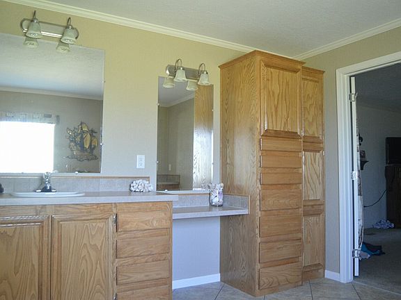 Solitaire manufactured home with a 15'x30' front porch. 3 car carport. Country living on 3.37 acres. 3 large walk in closets. Skylight in one bathroom. Large utility room with mud sink. All electric. 2 A/C units. Large storage building in back.