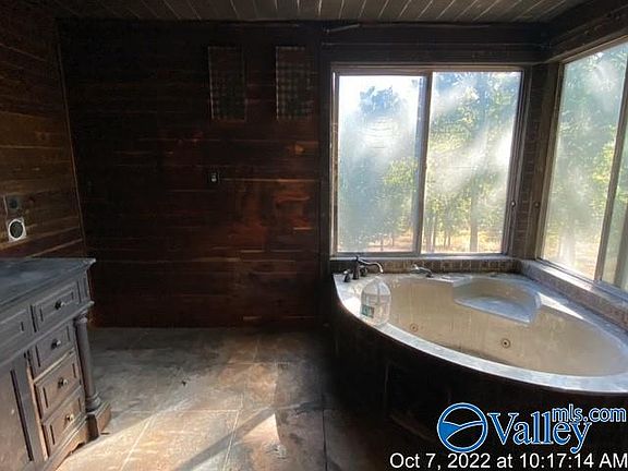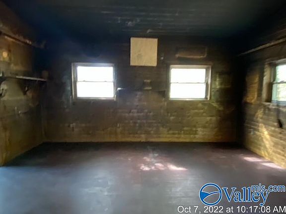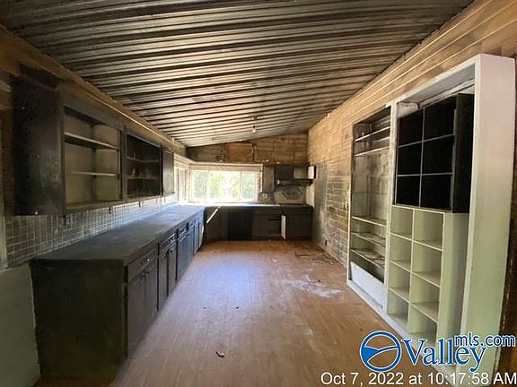 JACKSONVILLE- 2 bedrooms, 2bath Barndominium sets on secluded 40+/- acres. Barndominium has fire damage on main level, will need lots of work. Brown storage building may not stay.
