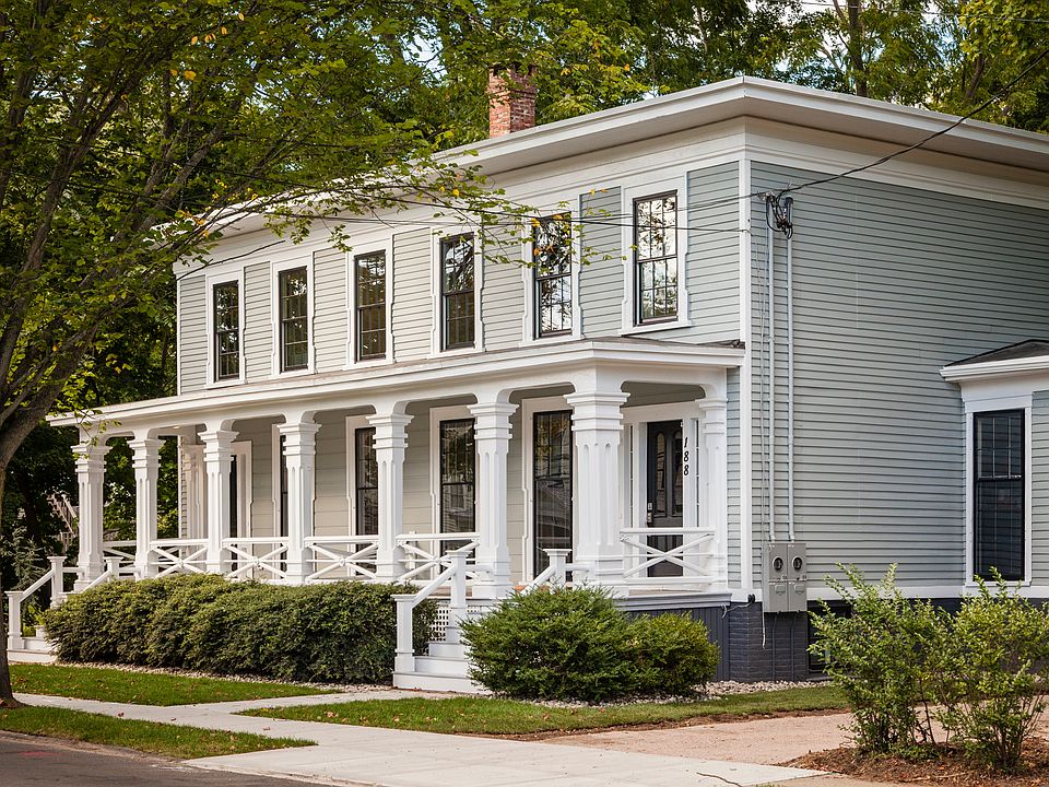 Walk to the town center!The William Faulkner House ~circa 1850 was originally built as a side by side "double home." This amazing antique home has undergone a complete renovation with custom details, now a 2 unit condo just steps from the Historic Guilford Green. Other than the historic framework, the home is new and highly efficient. New HVAC, plumbing and fixtures, electrical and electrical fixtures, septic system, all windows - (other than the historic "walk out" windows in the front)- new flooring, roofing, appliances and more. Each unit offers 3 bedrooms and 3 full baths, a full-sized laundry off the 2nd floor master suite and 830 square feet unfinished basement storage space (not included in listing square footage). Highly efficient soundproofing between the two units was achieved by using 2" x 6" studs, Comfortbatt stone wool insulation, Resilient Channel systems installed on the studs, and double 5/8 inch drywall on each side. New garage structure with two large covered parking spaces per unit, one garage and one carport space, and private storage space above. The large back yard includes a designated a 20'x30' garden area, or it could be the perfect backyard for dog owners. The features of this home include unique ornamentation like the front porch and doors. Stroll to town for a cup of coffee and wonderful restaurants. Walk to town pier or Jacob's Beach. The train station is a five minute walk. New York or Boston anyone?