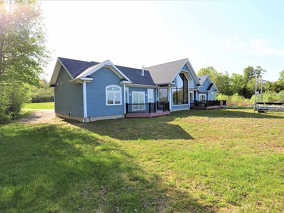 Outstanding luxurious waterfront home on Lake Memphremagog. Sitting on 2.5 acres of open and wooded land with gorgeous views and 194' of water frontage. During warmer months enjoy the boat dock with an electric boat lift or take in the view lounging on either of the 2 decks (27x12 and 10x19). Walk into the open concept layout which includes a superb great room with vaulted ceilings and a beautiful kitchen/dining area with Viking appliances, imported Blue Bahia granite counter tops, subzero refrigerator, and a range with barbecue grill and range hood. Also, take advantage of the wine cellar refrigerator, 2 under counter refrigerator drawers and a pantry with an extra full size freezer. Moving into a beautiful primary suite with upgraded fixtures, a jetted tub, and 2 sided fireplace. Additionally, 3 more bedrooms, a safe room with 2 safes, Mitsubishi AC in all rooms including primary bathroom, state of the art radiant floor heating, 2 more double sided fireplaces and crown molding and baseboards that run throughout the house. This house is hard wired ADT security system with 9 cameras along with being hard wired for a sound system. Enjoy the large 3 car attached insulated garage (35x26'9) that has the opportunity to build an apartment above. All sliding doors and windows, including above the garage are Pella and have built in blinds. This home is about 95% finished with some minor final touches needed. Being sold well under what is invested.