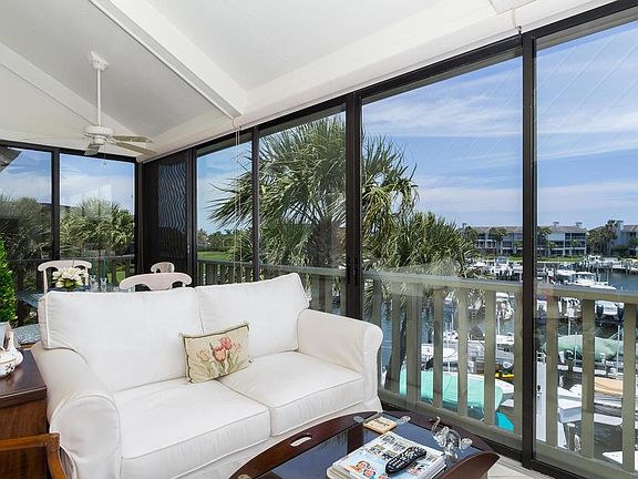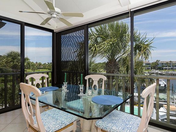 Well maintained & cheerful. Top floor corner unit overlooking the marina. Volume ceiling in living room. Glassed in and tiled balcony. Newer appliances. Private dock and pet friendly community. (1 pet - 20lbs max.) Sizes approx./buyer to verify.