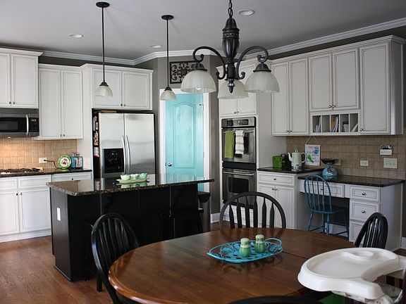 - Kitchen Features: Cabinets Stain, Pantry, View to Family Room, Stone Counters, Kitchen Island, Breakfast Room