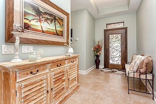 Turn you dreams into a reality with this M/I built home located in the gated community of Trinity preserve on a cul-de-sac...From the moment you arrive at this gorgeous, 3 B/R 2bath,3 car tandem garage,impeccably kept home, you will notice every bit of thought and detail that went into turning this house into a stunning retreat.Freshly painted exterior,brick paver driveway, and a welcoming front porch with stone pillars warmly welcomes you... As you enter the custom Iron front door,you are greeted by a spacious foyer and the most amazing tranquil waterview! This home offers oversized tile flooring and plantation shutters thru-out.The state of the art kitchen has 42 inch espresso cabinets with crown molding and comes complete with cupboard sliders,and granite counter tops and breakfast bar. Massive open concept, light and bright, living/dining room with tray ceiling, perfect for entertaining. Master bedroom sports ensuite with beautiful garden tub,and shower with new glass enclosure and double sinks with cultured marble countertops.Spacious walk in closet.The waterview from the bedroom windows are spectacular! The unusually large laundry room has extra large sink and tiled backsplash and plenty of cabinetry.Dry butler bar is so convenient for those get togethers.Stunning lighting fixtures create the perfect ambiance.Office area has built in 8X2 "tech desk" with plenty of cabinets for storage.This home offers split plan where 2nd and 3rd bedrooms each with double closets are located in the front of the home. Double sliders lead to a fabulous back porch where you will spend many a day/night sitting back and admiring the huge pond, and nature preserve where you will see the most interesting birds and wildlife from the privacy of your own fully fenced in backyard oasis.Gutters installed in 2016 . Did i forget to mention that this home is Energy Star rated?! It also has an "A" rated school system!! Awesome location close to amazing restaurants,shopping centers complete with a Publix right outside your development. Medical centers and Tampa airport are only a short drive. Trinity preserve has no CDD'S!!!! Why build and wait for new construction when you can have all the fine craftsmanship and upgrades and no wait at an incredible price? The only thing missing from this gorgeous home...You and your new lifestyle!!!!