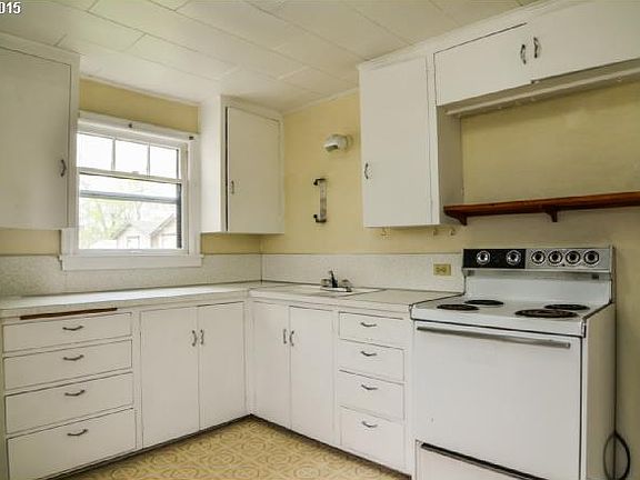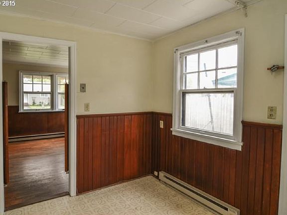 Cute 2 bedroom home with hardwood floors, extra large attached garage (560 sq ft), wood stove, eat-in kitchen, 3 small outbuildings/shops all on a large, level, sunny, fenced lot! Great first time home buyer or investment property.