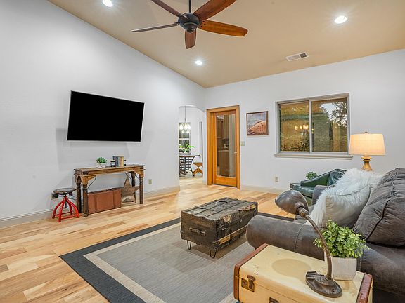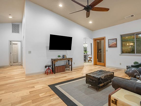 This beautiful home sits on a full half acre park like lot close to town. Light and bright with high ceilings and tons of natural light. New engineered wood floors and new interior paint throughout. Spacious primary suite with walk-in closet and spa like bathroom with jetted tub. Covered back patio is perfect for entertaining. The professional landscaping with uplighting is amazing at night. Separate fenced garden area, room for your toys and RV. Stamped concrete driveway. Potential to divide the lot per seller. This property has so much to offer! 40 GPM well when drilled per seller. Buyer to perform their own due diligence into all aspects of the property including condition and intended use.