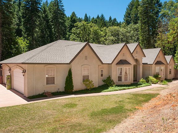 Elegant custom home rests beneath the pines on 5 acres of privacy. Featuring an open floor plan, granite adorned island kitch. w/stainless appliances, pantry & nook along w/a formal dining rm & family rm w/coffered ceiling & fireplace. Master suite offers patio access,walk in closet & jetted tub. Entertainer's paradise complete w/ample outdoor living,stamped concrete covered patio & a peaceful setting w/yr round creek. Large 4-car garage & room for RV.High speed internet available.