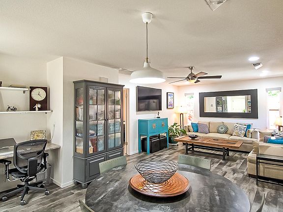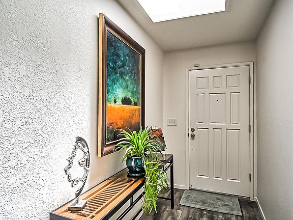 This is a Must See!! This home is immaculate! Totally upgraded and maintained. Looks and feels like New. Remodeled interior with slab granite on kitchen and bathroom vanities, new appliances, and new flooring. Very tastefully appointed. Sweet covered patio finished with deck flooring and electric fireplace. The fenced back yard is finished with decking for outdoor entertaining. Finished two car garage The HOA covers exterior of the building, the roof, and front yard maintenance as well as the Community Pool and Club House maintenance.