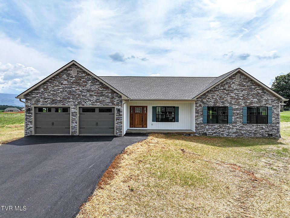 Seller is offering $5,000 towards buyers closing, interest rate buydown, etc. New Construction in Tusculum on 1.5 Acres with a view!! 2000 square feet of all one level living and an attached 576 square foot garage. This stunning 3BR/2BA is filled with beautiful finishes and upgrades. Open the gorgeous wood front door with matching sidelights to enter the great room, and a great room it is!! The floor plan is open and features vaulted ceilings, luxury vinyl plank floors, LED recessed lighting, and ceiling fans. There are 3 sections to the great room, the kitchen, living room and sunroom. This home was built to take in the mountain views. The living area is large and spacious and flows into the sunroom area which offers a second living area and showcases the views through its many windows. Off the sunroom is a large deck for more entertainment options and taking advantage of the views. The third area is the kitchen, and it is fabulous. Khaki Shaker Cabinetry, white quartz countertops, a walk-in pantry, another walk-in storage closet and Stainless Steel LG appliances. Next up in the Primary bedroom in this split bedroom designed home. The primary is huge and features an ensuite bath with a walk-in tile shower that compliments the double vanity. The primary closet features a closet system already in place. On the other side of the home are 2 bedrooms and a full bath with tub shower combo. The bedrooms are large and both closets have systems in place for convenience. One of the most convenient things about this home is the 2 car garage with access off the kitchen to load and unload groceries with ease. The driveway is paved. The most extraordinary part of this property is the lot itself. 1.5 acres, level to gently rolling, and panoramic in your face mountain views. Plenty of room for an outbuilding, pool, garden, or even all three!
