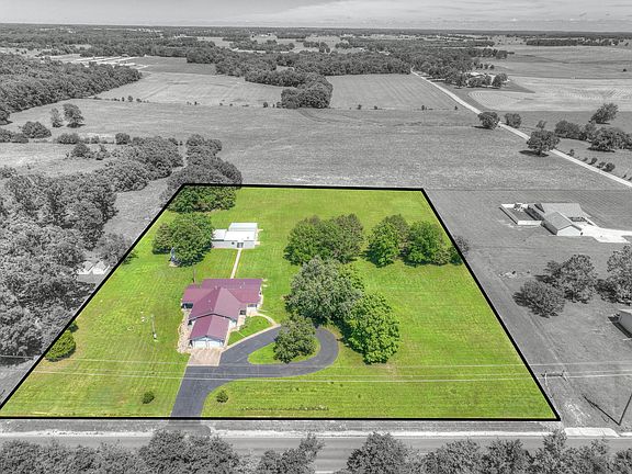 EASILY converted to 3 bedroom, 3 bath home! Custom home, great living areas sitting on a gorgeous, manicured 4 acres with a beautiful view of the countryside. Less than 5 minutes from town. 44X30X12 Steel utility shop connected to a 20X30X14 steel shop with 220 and wood stove. 14X24 RV carport is attached to shop with hook-ups and septic dump nearby. A newer metal roof, 2 Lennox natural gas HVAC and a Generac 22KW generator give assurance of comfort 24/7/365 a year. Home includes newer septic system and a deep well. Amazing storage with lots of quality custom cabinets and walk-in closets throughout the home. Enjoy the outside year-round from 2 expansive closed-in porches. An additional connected open porch is set up for outdoor BBQ and grilling. Home includes the following appliances - stove, refrigerator, dishwasher, disposal, freezer, washer & dryer. 3 Full bathrooms for this 2 (could be 3) bedroom home. Lots of home for the money - Do Not Expect It To Last Long! Schedule your tour today!