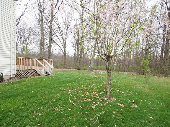 Lovely, well cared for colonial home built in 2000 and located on a cul de sac. Wooded back yard view. 3 bedrooms, 1-1/2 baths. Kitchen has oak cabinetry, eat in dining area. Range, refrigerator and dishwasher stay. Living room and dining room offer an open floor plan. Dining room has wood flooring. Access the 13 ft. x 16 ft. wood deck from the dining room. First floor half bath. Both baths have oak cabinetry. Hook up for either a gas or electric dryer. High energy efficient furnace. 2-car garage with storage cabinetry. Relax and enjoy the wooded view from the huge back yard deck. Swing set stays.