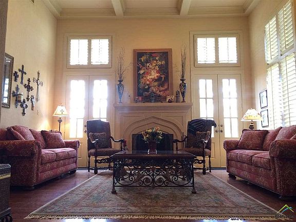 Peak of perfection! The perfect blend of country living in a gated neighborhood. This French-county home is luxurious and lovely on a large corner lot. Floor plan includes 3 living areas, 5 bedrooms with split master retreat and split guest bedroom and bath, 3 car garage & workshop area. Perfect home for entertaining with formal and informal dining areas and a formal living area that is magazine worthy! Spacious chef's kitchen with high-end appliances. Gorgeous trim work, plantation shutters, arched doorways and wood floors throughout home. Huge patio-great for outdoor dining! Stunning custom gunite pool with stone accents and spa with waterfall into pool and separate water feature. Large pool deck has sunning area and palm trees for a tropical paradise! Upstairs there are 3 bdrms and the ultimate man cave/media room with coffered ceilings, custom fridge and built-ins. Neighborhood amenities included a fully stocked pond, great for fishing. Plush and lush home! Get away to life!