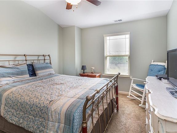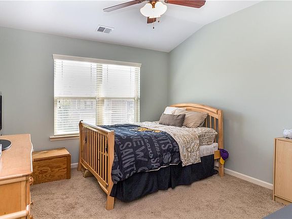 Beautiful home on a cul de sac w/ oversized yard, step in to your foyer entry way w/hardwoods on the main floor. Open floor plan. Kitchen has granite, stained cabinets, s/s appliances and has open view & breakfast bar into family room. Powder bath on main. Upstairs has two bedrooms that share a bath, laundry room upstairs as well. Master has sitting alcove and treyed ceilings. Master bath has water closet, walk in closet, double vanities, separate shower & oversized tub. Backyard fenced w/ a patio. New a/c coils and interior paint. Close to shops and lake Lanier