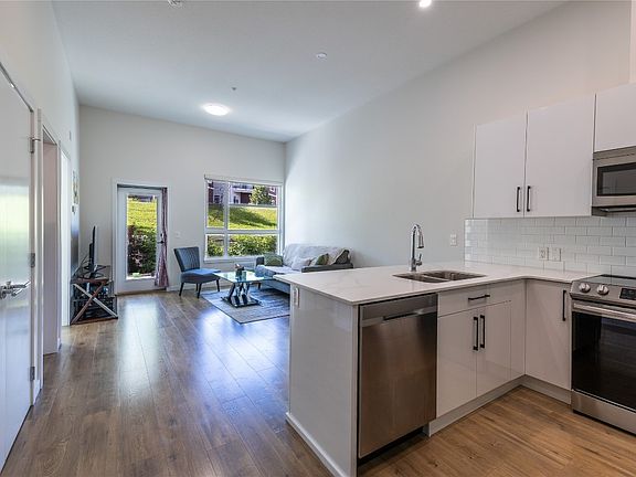 Stylish Living in Pineview Valley! Welcome to this bright and inviting ground-floor home in the Mountainview complex, a quality 2019 build by Granite Developments. Offering 670 sqft, this 1 bedroom plus large den, and 1 bathroom residence combines comfort with functionality. The kitchen features stainless steel appliances and opens seamlessly to the living area, creating a modern space for everyday living. The spacious primary bedroom provides plenty of room to unwind, while the den offers flexibility for office work, hobbies, or guests.