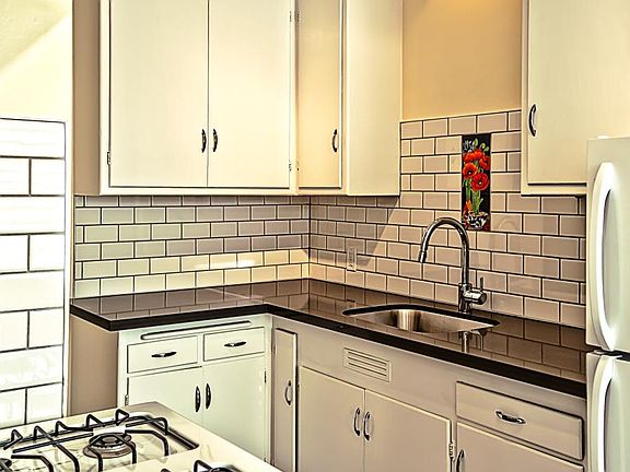Mid Century building, 3rd floor sunny studio with large windows, hardwood floors, restored kitchen, eat in kitchen and closets. Elevator in building. Approximately 500 sq. feet.