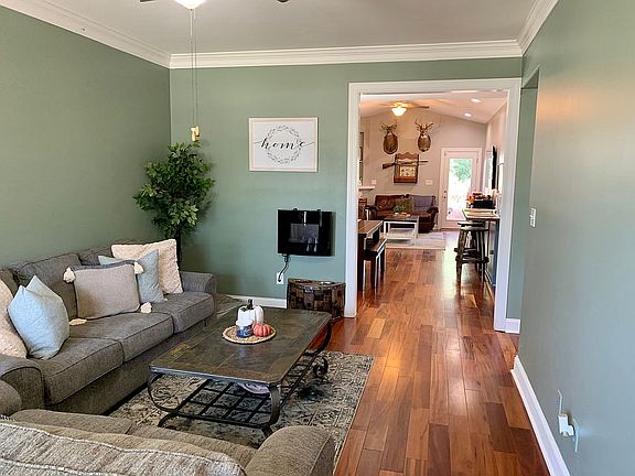 Wow! 3 Bedroom, 2 Full bath, open floor plan with cathedral ceiling, real cherry hardwood flooring, brand new carpet, plus bonus family room. All on 1 level and completely updated. Master ensuite features vaulted ceiling, custom tile shower and flooring, with a large walk in closet. Kitchen has all stainless appliances, pantry, bar, and tiled backsplash. Crown-molding mainly throughout entire house. Home also features covered front porch, privacy fenced in backyard, spacious back deck, tastefully landscaped, backs up to woods, and an attached 2 car garage. Home is move in ready!