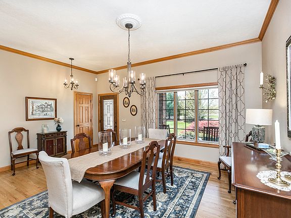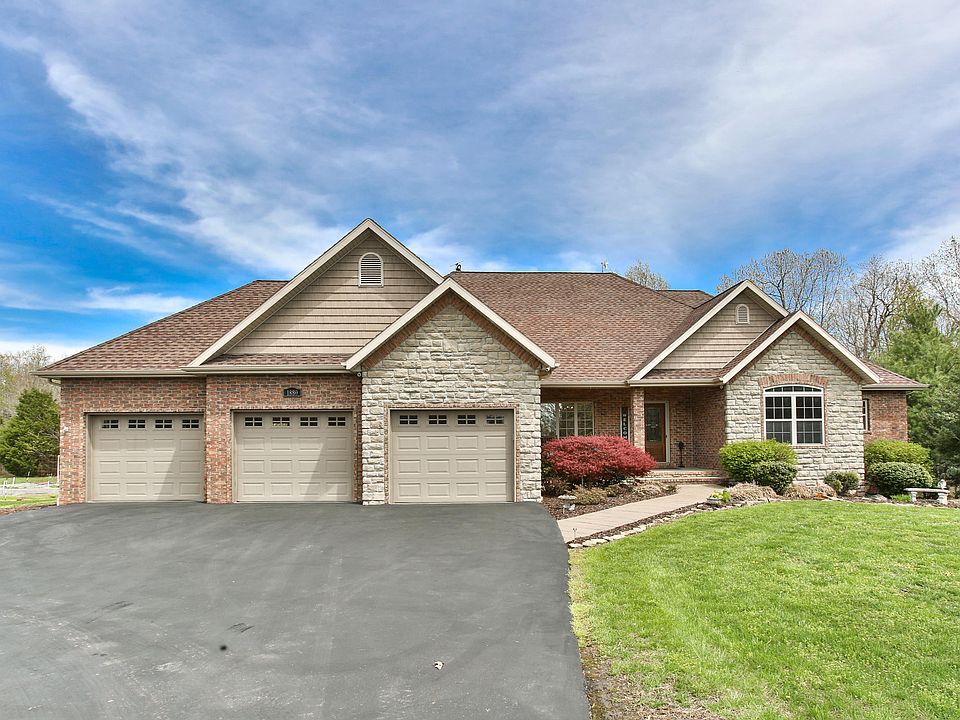 Sitting on 5.31 acres this outdoorsy abode is sure to impress before you even walk in. Featured in 417 Magazine, this transitional 5 bed, 3.5 bath spacious home covers over 4200 square feet and includes its own private walking trails. The main floor has an abundance of natural light via large windows throughout the open concept floor plan. The living room is accented with a stone fireplace, high ceilings, and view to the large kitchen. This well-equipped kitchen is complete with stainless steel appliances, two ovens, warming drawer and spacious cabinets; a space you'll love to gather with friends and family. Centrally located, the large island includes a drop-off bar counter with seating for four. The main level houses both an informal and formal dining area with plenty of seating for all.
