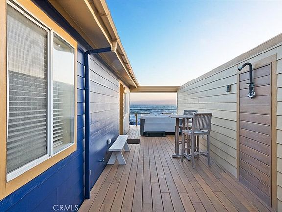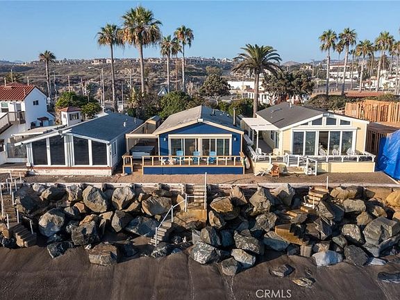 NOT LAND LEASED LAND! This Capistrano Shores home is California oceanfront living at it's best! Perfect for spending days swimming, surfing or just enjoying ocean views from Catalina to Dana Point to San Clemente Pier. This furnished cozy beach home features a private Timber Tech deck surrounding the home, an exterior redone with Harding Board siding, bubbly spa to sit and enjoy views, outdoor shower and storage cabinet to store your outdoor gear. Inside you will find 3 bedrooms and two bathrooms. The main bedroom is ensuite, features slider to outdoors and lots of closet space. The kitchen is complete with stainless steel appliances, granite counter tops, bar type eating counter, walk in pantry and of course beautiful ocean views! Large dining area and large living area with cozy fireplace are perfect for entertaining guests. Capistrano Shores is well located to San Clemente many restaurant options, scenic trails for biking and hiking, community parks, San Clemente Outlet stores and Pacific Coast Highway to take north to Dana Point or south, and easy freeway access