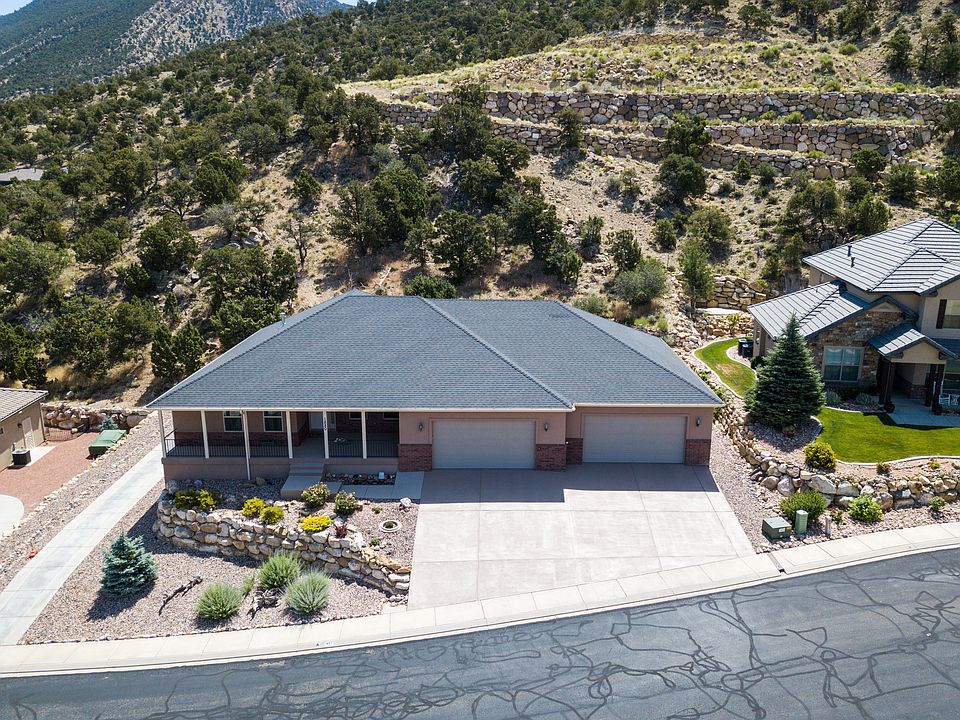 Custom build 4 BR. home with unbeatable views from the front porch! Nice floor plan with office and spacious living room off the huge kitchen with granite and stainless steel appliances. Low maintenance, very private yard. Finished walk out, master bedroom, game room, arts & crafts room and large living room in basement. The spacious, heated 8 car garage has 220V and hot & cold water and is perfect for a shop or car lover. Every bedroom has a walk-in closed. Front driveway and porch are slip resistant with tufflex.
