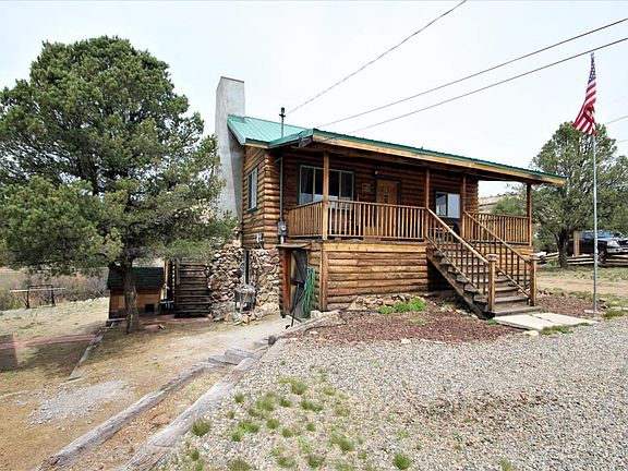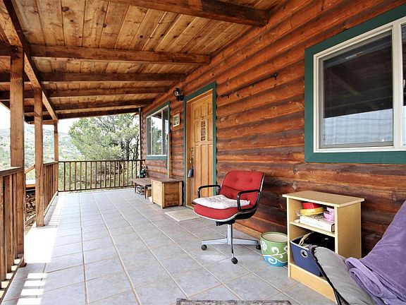 Charming log-sided home situated on a large lot with amazing views. 3 bedroom 2 baths plus a loft upstairs and a den/study downstairs adjacent to a sun-room. Loaded with features including vaulted wood ceiling, exposed beams, a fireplace with natural stone and upgraded wood floors throughout (carpet in 2 bedrooms). A country kitchen with views, tile counters, tile back-splash, and a backdoor leading to a covered deck. The cozy loft has its own balcony, hidden storage behind bookshelf, and makes a great study/office. Pellet stove downstairs is very efficient. Separate laundry. Huge wrap around deck which is mostly covered and incredible views! Ample parking for cars, RV's, boats, and ATV's. Covered front porch. Spa and sauna. Near state land and perfect for hiking. Workshop/storage too.