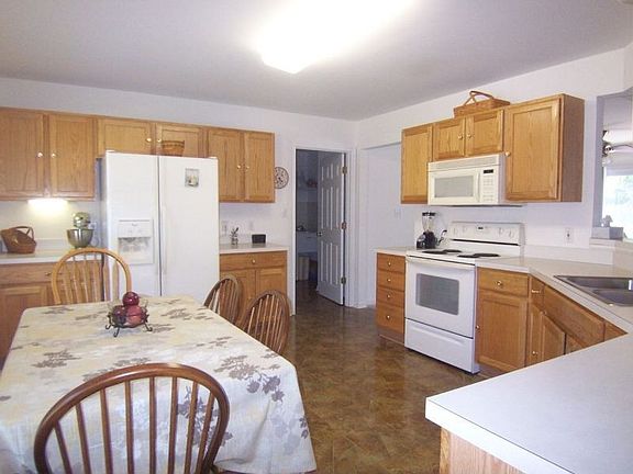 Custom built ranch home nestled on a half acre in Lynwood provides a private retreat from the hustle and bustle of the world. With 3 bedrooms, 2 full baths, open floor plan, vaulted ceiling and gas fireplace in living room, and full unfinished basement, this home offers more living space than first thought. The interior of the home has recently been professionally painted a neutral hue throughout and is move in ready. An attached two car garage is perfect for daily use while the additional detached 2 car garage in the back yard could be a great workshop, hobby destination or added garage space for vehicles/motorcycles. Mature trees offer lots of privacy while relaxing in the Therapeutic Hot Tub on the deck. Enjoy this half acre of paradise and be the envy of your friends! The easy care vinyl home has a level front yard. A covered porch offers a place of respite. There is a storm door and all weather front door. Twin half side lights with custom blinds flank the door. A coat closet is tucked behind the door; the foyer (7 x 5) flooring is laminate and there is a ceiling fixture. The living room (14 x 12)/dining area (10 x 15) includes neutral wall to wall carpeting, two windows, vaulted ceiling and two lighted ceiling fans. The focal point of the room is the handsome gas fired fireplace. Sliders open to the custom tiered deck and Therapeutic Spa. The eat in kitchen (15 x 13) has a durable vinyl floor, oak cabinets with laminate countertops, and double bowl stainless steel sink with side sprayer. The Whirlpool dishwasher, Whirlpool microwave oven, Whirlpool electric range, and Whirlpool refrigerator all convey with the home. A generous pass through/bar area opens to the living room. Set off by itself, the master suite (15 x 13) offers lots of privacy. It includes wall to wall neutral carpeting, lighted ceiling fan, two windows for natural light, and a walk in closet. The master bath includes vinyl flooring, double bowl vanity, shower stall and a single window. Bedroom 2 (11 x 12) and Bedroom 3 (11 x 12) are on the opposite side of the living room. Bedroom 2 has wall to wall carpeting, lighted ceiling fan and closet. This room opens to/from the hallway as well as a private entrance to the hall bath - a wonderful feature for a guest bedroom! The full bath is in pristine condition as it is rarely used. It includes vinyl flooring, double vanity, tub/shower unit, and single window. Bedroom 3 also includes carpeting, closet and windows to the back yard. The laundry room (9 x 7) accesses the attached garage. It boasts an upgraded utility sink, vinyl flooring, and pantry space. The Kenmore washer and dryer set will remain with the home. The home security key pad is in this space. The attached two car garage includes automatic openers, service door to the side yard, and plenty of space for storage. The unfinished basement does have some storage shelves installed for seasonal items as well as rough in for future bath, additional electric for future finished space, and nice sliders to the patio. Twelve courses of cinder block provide a tall ceiling for the future finished space. The Rheem 40 gallon gas fired hot water heater, Luxaire forced hot air gas fired furnace and electrical box are in the rear corner. Two full sized windows allow for natural light. A detached, two car garage with 220 amp electric service sits behind the home. This great workshop space is private and secure. The property backs to a farm and is lined by mature trees. It is fairly level and would provide a great space for gardens, play sets, or pet area. Don’t delay, this home is a wonderful buy and is in move-in condition. Why wait for new construction when you can move into this nearly new, gently lived in home by the holidays?