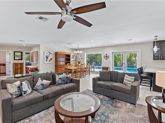 Recent Updates include a new roof and gutters (2021), hurricane impact windows (2020), an air conditioning system (2017), and a pool pump (2023). Outside, an oversized travertine deck surrounds your bright pool, offering a perfect setting for outdoor enjoyment. NO HOA! This is your chance to own a piece of paradise!