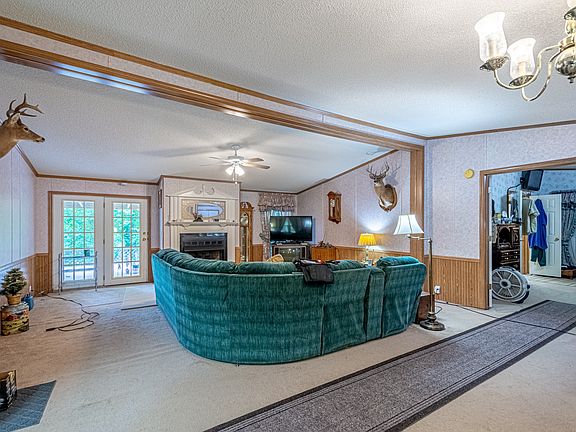 Do you like PRIVACY??? This property has a lot to offer to those that do. 49+/- acres, 2 spring fed ponds with catfish/brim/crappy, about 25 acres of fenced pastures, and 23 acres of woods. Modular Home is set on a concrete slab with brick underpinning. New gutters, 7 year old metal roof, 5 year old central unit, extra insulation in attic. A LOT of OUT BUILDINGS including a 22x60 RV shelter. Deck is composite and has a combo grill/smoker. Too much to list here. Call today to schedule viewing.