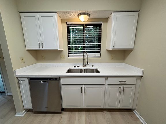 Stylish white cabinetryOpen-concept layoutRefreshed bathroomStone countertopsSleek stainless steel appliancesDining areaCentral air conditioning
