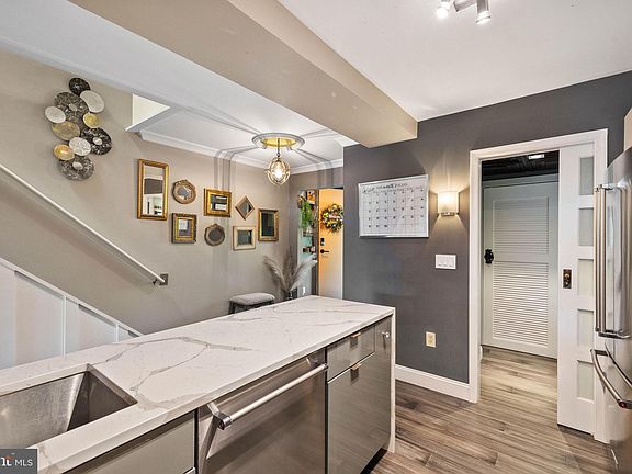 This sleek two-level condo, completely renovated in 2021, offers modern design with high-quality finishes and gorgeous views. The upper floor boasts a spacious primary suite with a walk-in closet, a double vanity bathroom featuring a custom glass-enclosed shower, and a private terrace where you can unwind. There's also a second bedroom that can double as a home office or a guest room.The main floor has a custom-tiled powder room, a stacked washer and dryer, and another balcony. Both levels are filled with natural light from the glass sliding doors that lead to stunning views of the waterfront and city skyline. Two private terraces are perfect for taking in the scenic Brandywine waterway and the nightly light show from the landmark Brandywine Pumping Station.The renovation updated the entire space with modern features, like new flooring upstairs, crown molding throughout, and a contemporary custom-tiled bathroom with updated plumbing. The main floor's focal point is the sleek black marble foyer that leads into a chic kitchen equipped with a custom quartz waterfall countertop, a deep double sink with a commercial-grade faucet, and high-gloss two-tone cabinetry. You also get top-quality stainless steel appliances and luxury vinyl plank flooring throughout the first level.Located in a gated, pet-friendly community, this condo offers secure living with a deeded underground parking space, low HOA fees, and a newly installed roof and gutter system (completed in May 2022). The HOA fees cover essentials like water, sewage, recycling, trash removal, security cameras, and contribute to a reserve fund. The property includes a deeded parking spot: tax parcel number 26-029.10.175. With unparalleled views of the city and waterfront, a dedicated parking spot, and a host of premium amenities, this home provides a vibrant and convenient urban lifestyle.