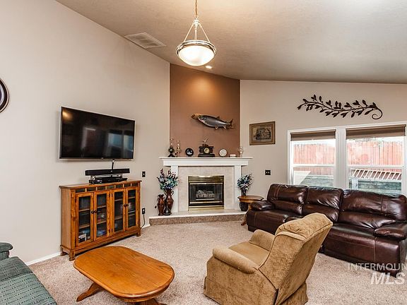 Beautiful 2nd owner home on a large corner lot across from private park and Indian Creek. Enjoy the beautiful sunsets and great views of the Owyhee's. Over 1350sqft, 3 bedrooms & 2 baths, living room with gas fireplace open to the dining and kitchen. Lots of updates that include New exterior paint in 2021. Interior paint, linoleum, carpet and pad all new in 2018 along with appliances, gas water heater, HVAC system, and garage door opener. Quiet neighborhood with friendly neighbors. Walking distance of Kuna green belt, schools, and downtown businesses. A well loved home that will not last long.