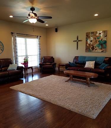 3/2/2 Partial brick 2,134 sq. ft. This home has everything you need! Open concept living room, kitchen and dining room. The kitchen is equipped with granite counter tops, stainless steel appliances and a large walk-in pantry. Large master bath with Jacuzzi tub, tiled shower and walk-in closet. Double vanity and tiled showered in hallway bathroom. Large closets and storage space throughout the home. Home is sitting on 2.5 acres with lots of young trees. 20x50x15 red iron barn perfect for RV or class A motor home plus a 30x36 heat and aired shop. 07/22/16