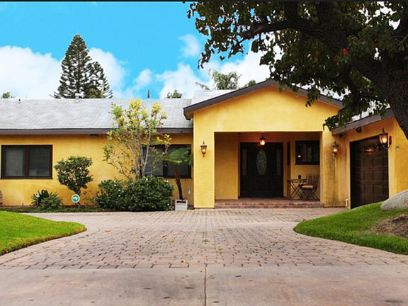 Single Story updated California Ranch Home on 1/2 acre corner lot with huge lush yard, multiple sitting areas, outdoor living room with TVs and fans, large grassy area, resort style pool with waterfall and grotto, BBQ and outdoor bar, circular drive, 2 car garage, and RV/ boat parking area.The home boasts 5 bedrooms, 3 baths with Venetian plaster walls, recessed lighting, hardwood floors, gorgeous updated kitchen with dining area and center island, SS appliances. Open floor plan design lets you interact from the kitchen and dining room to the living room and out to the outdoor entertaining areas. The living rooms sliding glass doors are fold up style that let you create the perfect indoor/ outdoor flow. Outside you will find a covered outdoor living room that flows seamlessly to the bar, bbq area, pool and grassy yard. Huge master has walk in closet and steam shower. Mature and manicured landscaping wrap this perfect home. Dont miss this wonderful home.