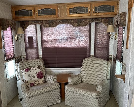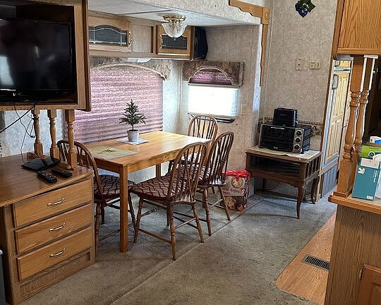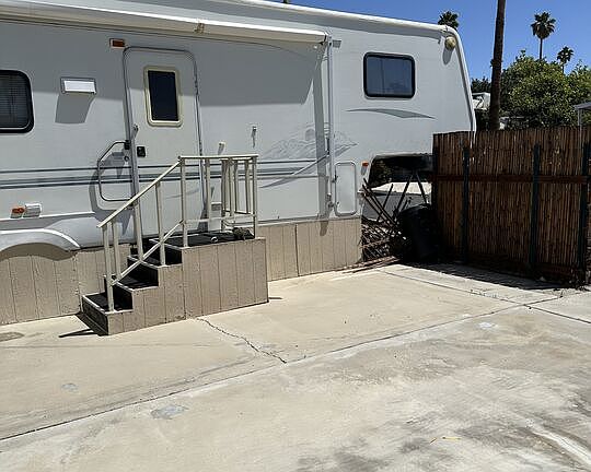 Take a look at this lovely 35 ft Fifth Wheel with 3 slides located in Wagner Mobile Home park, a gated 55+community in Desert Edge California. Close to all the golf courses in the Coachella Valley, Wagner Mobile Home Park is quiet and safe, with hot and cold mineral spas and pools. Your clubhouse is spacious with a library, kitchen, and meeting room. Play darts or shoot pool in the game room. This is perfect for the buyer looking for a new full-time residence, or a weekend getaway to visit and enjoy the Palm Springs lifestyle. Turnkey with kitchen appliances and cutlery, bedding, tv, queen bed, washer/dryer hookups, and a 10' by 8' shed for storage or a workshop. Mountain and desert views. Hurry this won't last long! There is no HOA new owner pays Space rent of $477/month.