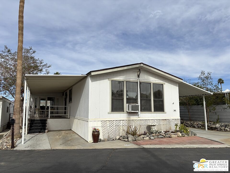 Welcome to the peace and tranquility of Wagner Mobile Home Park, a 55+ rent controlled community in Desert Hot Springs. This lovely home, nearly turnkey and furnished, has so much room for relaxing and entertaining. The living area boasts wood beamed ceilings, expansive windows to enjoy the desert views, and a large dining area to host friends and family. You will find updated appliances and a full pantry in the well appointed kitchen. There is also a butcher block island that doubles as a breakfast bar. There are 2 spacious bedrooms and baths and you will just love the 3rd room add-on. Tastefully constructed, it makes for the perfect office space, or maybe it becomes an art studio or additional bedroom. Luxurious vinyl plank floors and a separate laundry room complete the package. There is a large deck to enjoy morning coffee or evening cocktails. The home is beautifully landscaped and there is plenty of covered parking. Park amenities include mineral water pool, hot and cold mineral water spas, a spacious clubhouse with library and pool table, and shuffleboard courts. You'll want to check this one out!