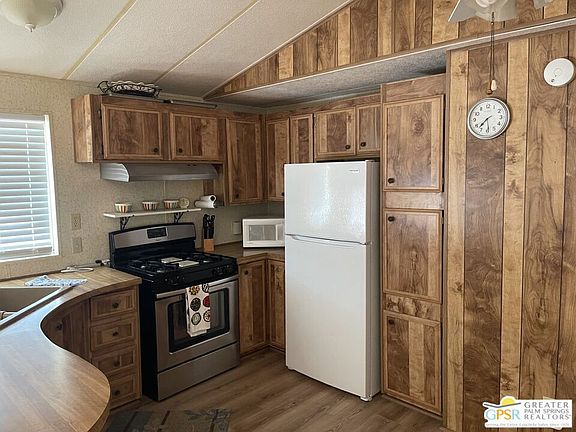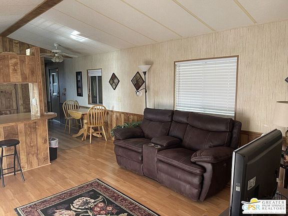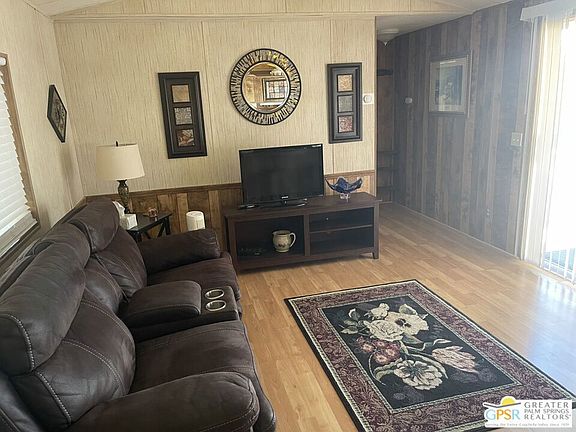 Welcome to Wagner Mobile Home & RV Park, a 55+ senior community! This beautiful enclave of mobile estates hosts gorgeous mountain views, a beautiful pool/spa area, and impeccably manicured grounds that are second to none. Stepping into this nicely maintained 2 bed 2 bath home, you will find a nice kitchen, living room, an updated primary bathroom, and two bedrooms. There is an enclosed add-on room perfect to use as a hobby room or work shop. Additional storage is available in the two good sized sheds. This home sits on the southern edge of the community with unobstructed views of the desert and snow capped Mt. San Jacinto. Enjoy your morning coffee and the fabulous views on the covered deck. This home is perfect for the buyer looking for a new full-time residence, or a second home to visit on the weekends to enjoy the Palm Springs lifestyle. The home is furnished including a new refrigerator and washer. You won't need much to make it your own. Don't miss your chance to own your own slice of heaven!