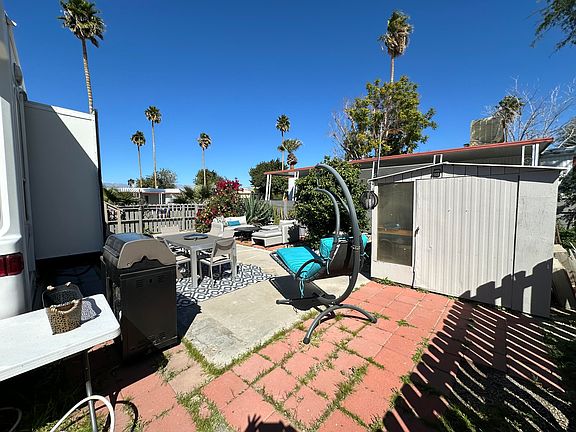 55+ Hot Mineral Water swimming and soaking pools; go through a gate to open desert and miles of trails. Fenced yard. Pet friendly community. Wagner Park Mobile Home and RV. Monthly lot rental, Not your average 5th wheel! More like a Tiny Home! Welcome to your new turnkey desert living in Desert Hot Springs, CA. EVERYTHING IS INCLUDED. Just bring your toothbrush. This 55+ gated community boasts hot mineral water, an active social community, and a gate out to open desert and miles of hiking trails. Live here in the winter, or all year round! Your huge fenced lot with mountain views really helps you make the most of the outdoor desert life. Entertain friends around a fire pit, and marvel at the starry skies. If you're looking for quiet, mellow, and relaxing, you've come to the right place, although an active friendly community is also here for you. Your new adorably furnished and detailed little home features a large fenced, private corner lot with deck and patio furniture and a large new shed. The plumbing is hooked up to septic. Full size shower and toilet, full size refrigerator. This won't last long at this price. Call now to view.