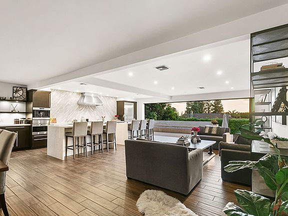 Amazing single-story estate, remodeled from top to bottom with incredible guest house!! This single-story sprawling estate is nestled on a quiet cul-de-sac in the center of the highly coveted Villa Park. The main estate is accessed through stunning double wrought iron/glass front doors with glass openings for air flow. Enter an impressive great room which is open, light, and bright and leads to the amazing dining room and kitchen complete with 2 islands of waterfall marble, custom cabinets, and top of the line Wolf/Sub-Zero appliances, dual wine coolers, and a custom humidor. A wall of 20 ft opening doors which overlook the patio and rear yard, pool area, and treetop views of beautiful sunsets. The dining area of this great room is enhanced by an amazing fire and ice fireplace surrounded by a wall of book-matched marble. Walk thru to an additional living/bonus room also with a10 ft wall of fully opening glass doors and book-matched marble fireplace and bar area. Recessed lighting, plantation shutters, smart home system, 3 Zone A.C. soft water system, tankless water heater, and Fleetwood windows throughout + more. Laundry closet has double washers and dryers. Romantic Master overlooking yard with custom walk-in closet (Could also be converted back to a bedroom). All bedrooms are complete with walk in closets. New plumbing including sewer to street. Amazing guest house with large open concept living and kitchen areas with separate bedroom/bath area, laundry room, and private little yard. Spacious entertainers’ deck, sparkling pool/spa, HUGE grassy area with lots of room to play. Perfect for play area, sport court, home gardening, and swing set/slide. This home has it all! Call immediately for details!