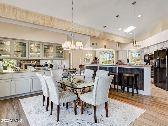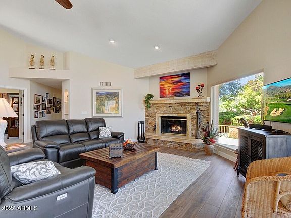 INCREDIBLE GOLF COURSE HOME. Views of MOUNTAINS. LOW COST STATE OF ART SWIMMING POOL. A stacked fireplace welcomes you in the vaulted great room. An open concept with Great room, kitchen, dining & breakfast all open to each other. A breakfast bar separates the kitchen from dining rm. A wall of windows and sliding doors open to massive covered patio and swimming pool. Freshly renovated kitchen and 3 bathrooms, Lg laundry room. Currently there is a flex room which could be used as an office or bdrm but is now being used to add space to make a 3 car garage plus golf cart/gar Sought after floor plan with 3 bedrooms, 2. baths. A TRUE RESORT HOME. GOLF, TENNIS, PICKLEBALL, HIKING, BIKING, ART, DANCING, CARDS, A LOCAL CHURCH, COUNTRY CLUB , COMMUNITY CENTER & so much more.