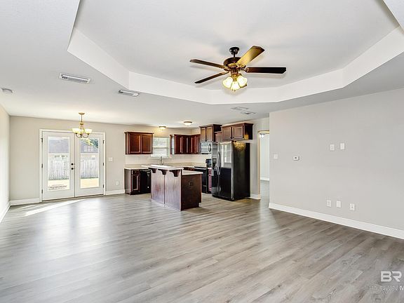 New, fresh interior paint throughout. Quick occupancy! Purchase this fabulous 3 bedroom/2 bath Benchmark home that offers easy, quick transition! Large open living space with tray ceiling and split bedroom plan. Vinyl plank flooring throughout – no carpet! Roomy eat-in kitchen with lots of cabinets, island/breakfast bar, upscale refrigerator and views of the backyard. Owners’ suite has large bathroom with double sinks, separate tub/shower and huge walk-in closet. Over-sized laundry room, two car garage, large fenced yard and manifold plumbing system. Convenient to all of Baldwin County and Pensacola; minutes to beaches. Must see.