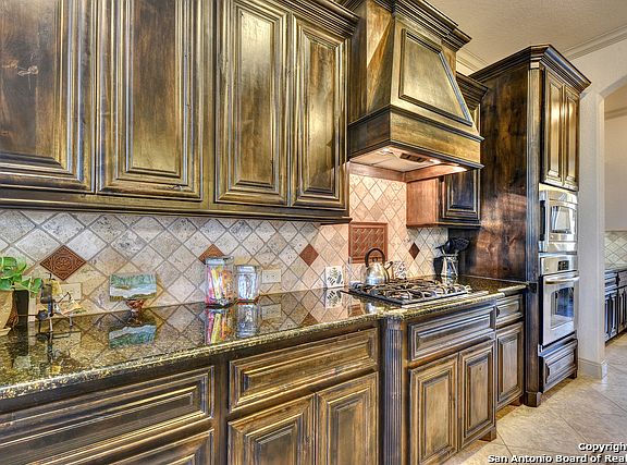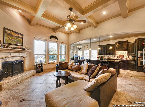 Gorgeous 1-story w/great curb appeal. This 4 bedroom, 2 bath home has an open floorplan w/impressive fireplace, unique ceiling detail, massive kitchen w/breakfast bar, custom cabinets, gas cooking, & butler's pantry w/wine rack. Lots of windows allow the natural light in. Elevated backyard allows for views. Dining Room is currently set up as an office w/french doors. Master bath retreat w/whirlpool tub. From your front door it's 1 mile to Crownridge Canyon Park & 2 miles to La Cantera Palmer golfcourse.
