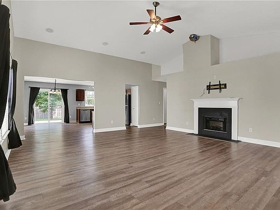 This stylish 3 bedroom 2 bath ranch is beautifully decorated, move-in ready and has tons of extras! Great, open floorplan and home backs up to a lush green space. Large, open kitchen boasts new stainless steel appliances, tons of cabinets and counter space and a large separate breakfast area leading to the patio in back. Kitchen opens to an impressive great room with high ceilings & a cozy fireplace. Spacious master suite with private bath and large walk-in closet. Bedrooms 2 & 3 are nicely sized and 3rd bedroom could be used as a home office. Finished garage. This home won't last! Don't miss out on this great opportunity!